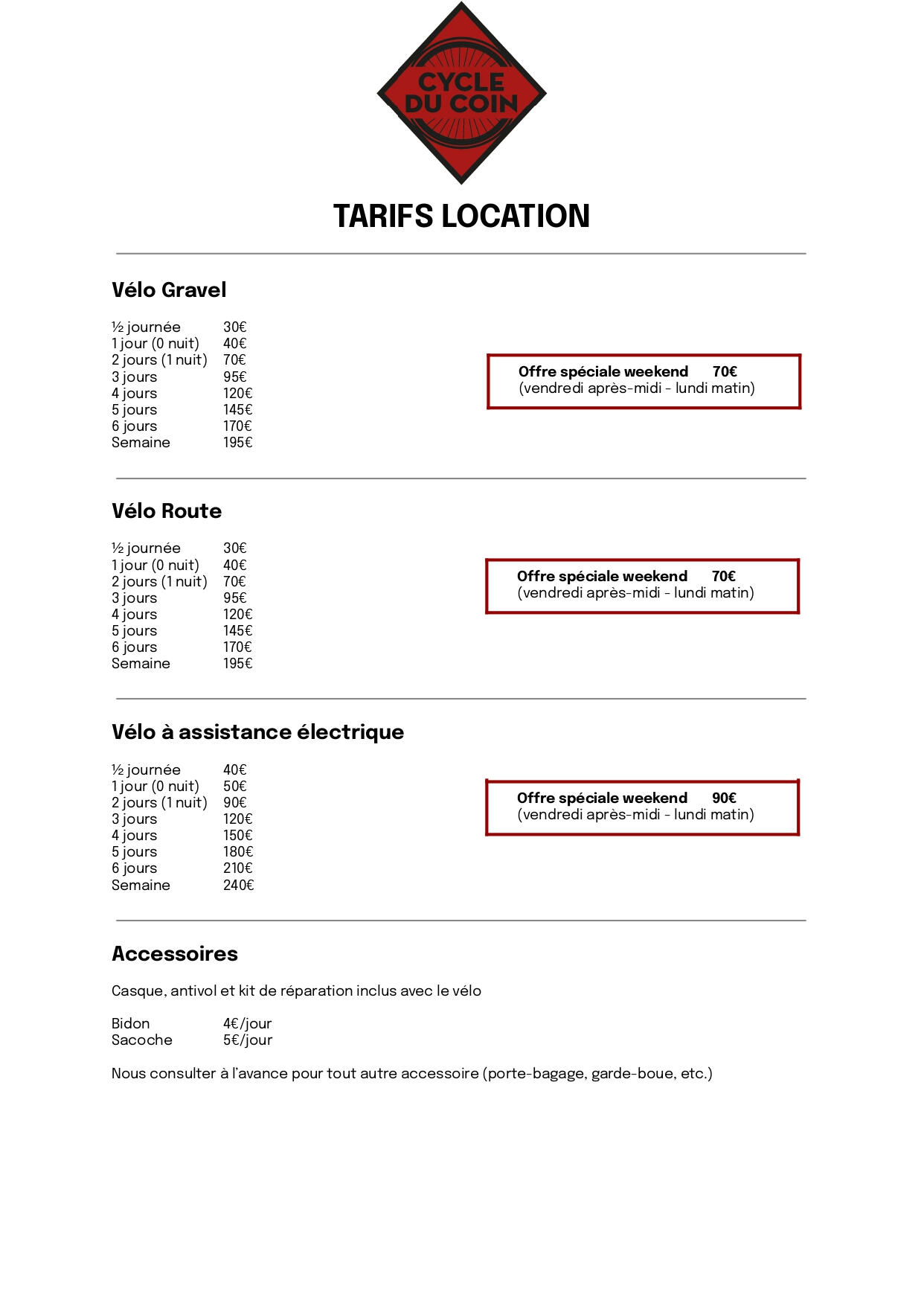 Depuis 2022, l’atelier Cycle du Coin propose tout type de réparations et opérations d’entretien sur vos vélos et vélos à assistance électrique.Vous y trouverez également des vélos d’occasion à la vente simplement révisés ou complètement transformés, parfaits pour simplifier vos trajets au quotidien ou partir à l’aventure.